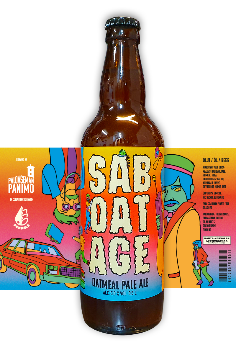 Paloaseman Panimon hämyt ja Pekkalen viekkaat vierteennielijät ovat saaneet aikaan jotain niin kovin kauraista. Beastie Boysin legendaarisen Sabotage -musiikkivideon innoittamana syntyi Saboatage Oatmeal Pale Ale. Tärkeimpänä yksityiskohtana Korvaluomalainen, Ranta-Korvalan luomukaura, joka antaa persoonallisen silauksen Paloaseman Panimon tunnettuun kauraprofiiliin. Humalina äärimmäisen raikkaat Simcoe, Vic Secret & El Dorado.