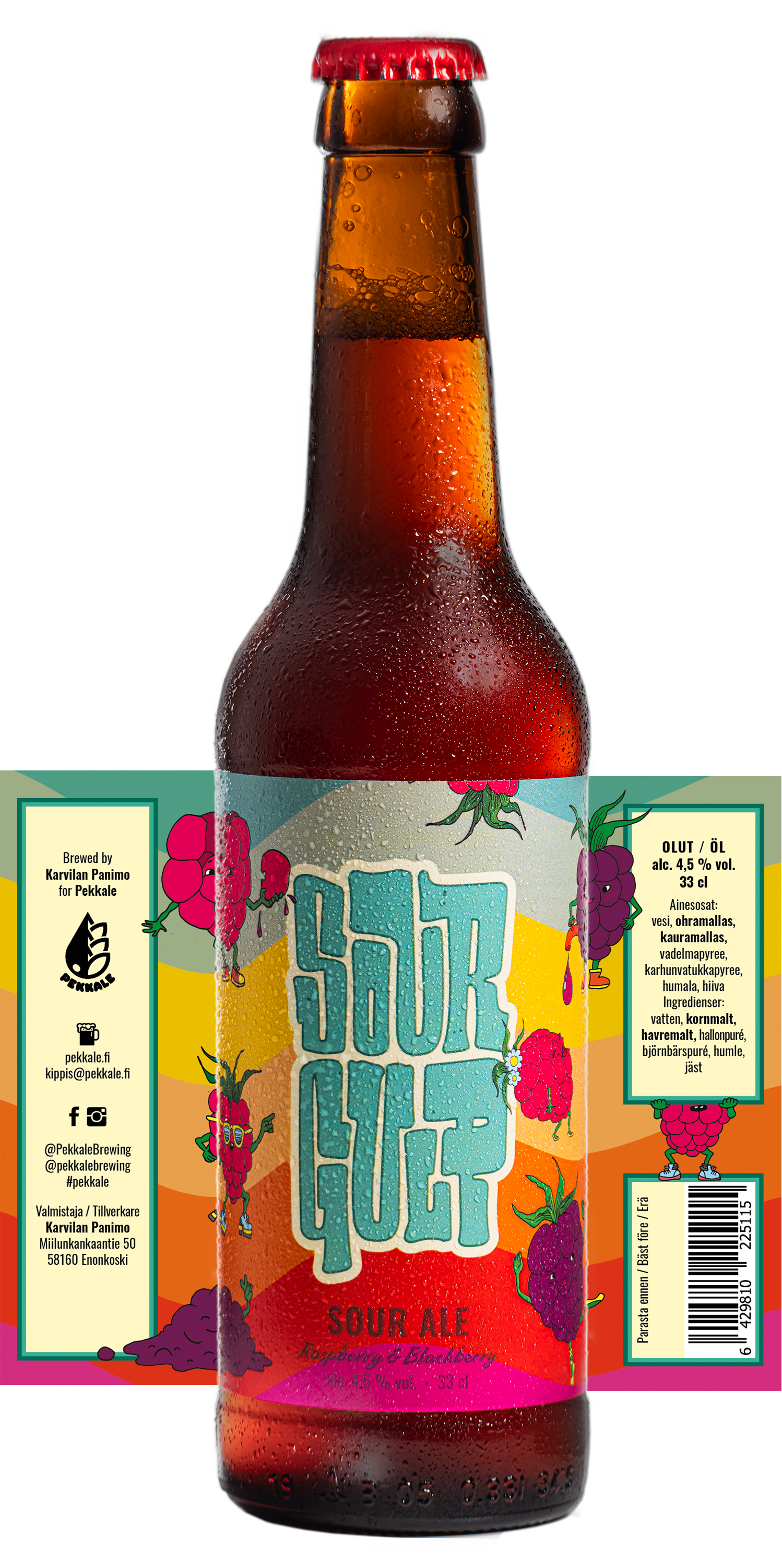 Pekkalen uusin tuleminen on täällä! Saammekko esitellä hapanoluiden sarjamme avaavan Sour Gulp sour alen! Vadelmalla ja mustaherukalla maustettu ihanan hapan mummonmehumainen janonsammuttaja, jossa kaura tuo miellyttävää pehmeyttä oluen runkoon. Alc. vol. 4,5%, "Just like grandma used to make".